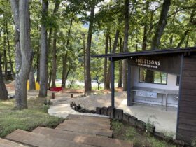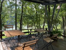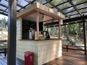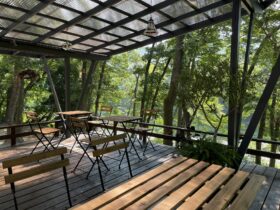 新たに自炊場や、森の中のウッドテラスにセルフカフェも増設致しました。