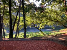 ウッドテラスからの荒川の景観は最高です。